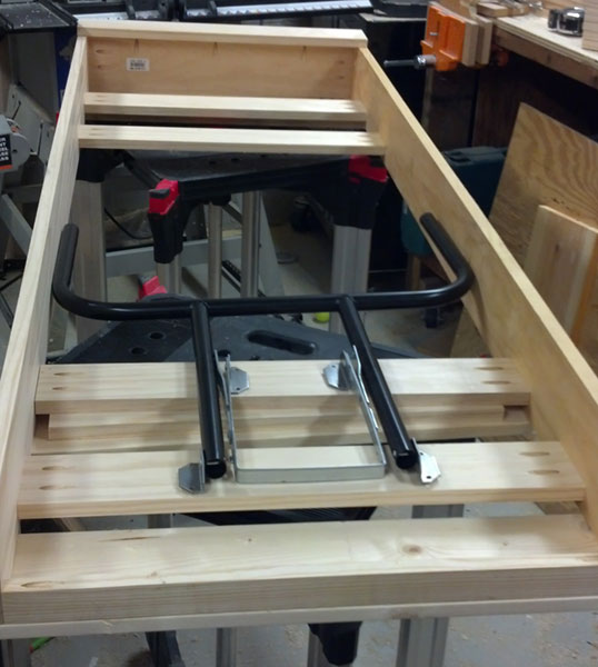 Now move the 1"x6"x25.5" and the scrap 1"x4" down to support another 1"x4"24" and place a table leg on top adjusting the position so that the table leg can be attached to the two cross beams. Attach the 1"x4"x24", but not the leg. ![]() <Back...Next>